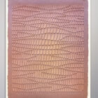 Our paper expert still cannot figure out exactly how this remarkable artwork was made. Handmade paper was pressed under high pressure, but we’re not sure how the gradient was introduced. 28 x 35 as custom float framed in matte black wood. Marked lower left A/P Artist’s print and illegibly signed lower right. Undated but the condition is so good that we assume it is quite contemporary. Any help with artist ID is appreciated.